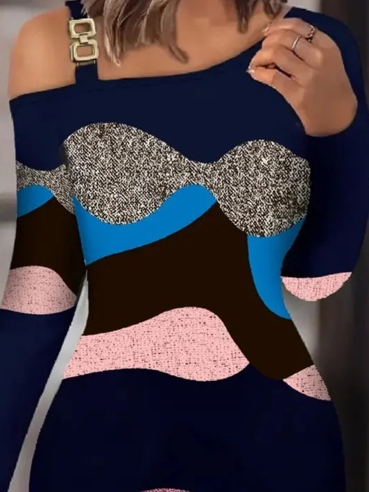 Kadın Uzun Kollu Tek Omuzu Askı Toka Detaylı Kısa Dalgıç Elbise