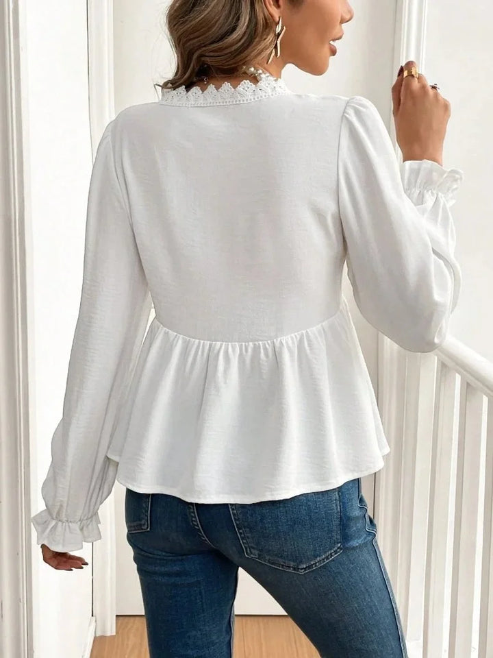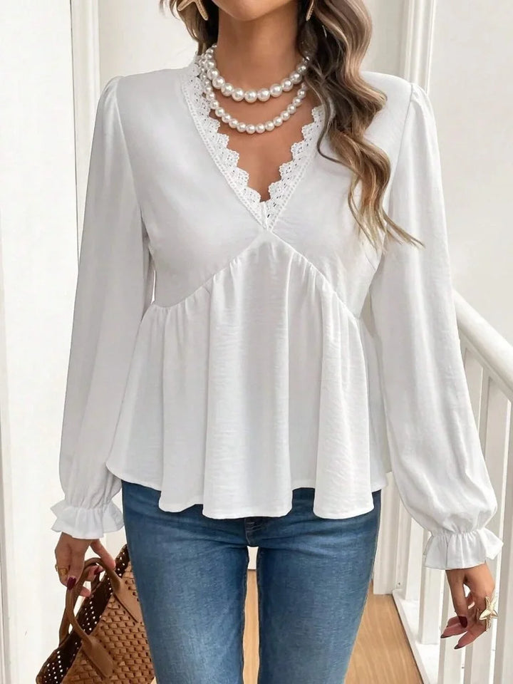 Kadın Uzun Kollu V Dantel Yaka Aerobin Bluz