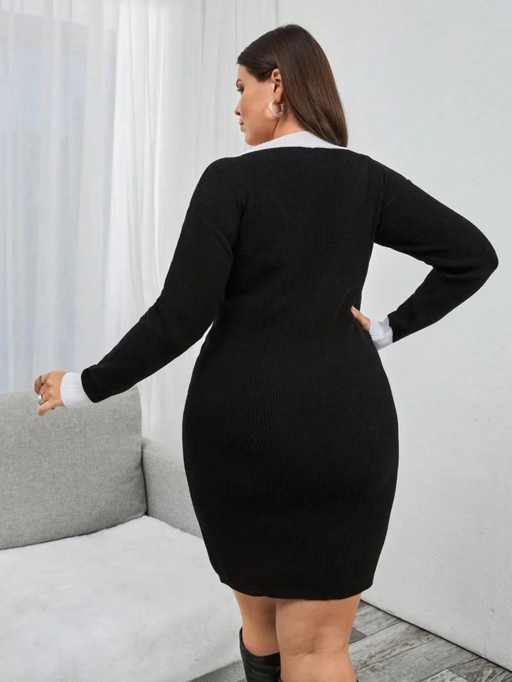 Kadın Uzun Kollu V Yakalı Kısa Triko Elbise
