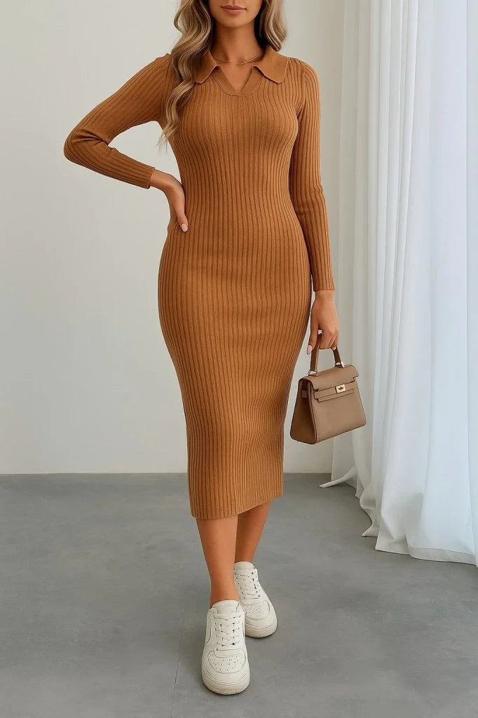 Kadın Uzun Kollu Yakalı Triko Elbise