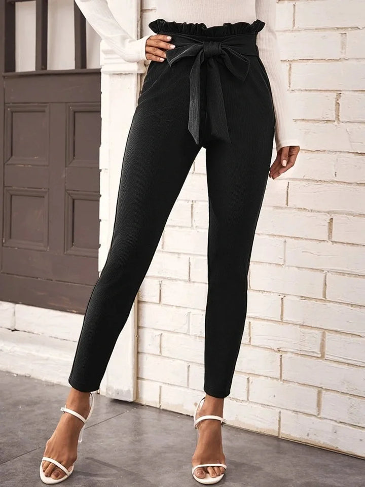 Kadın Yüksek Bel Beli Fırfırlı önden Bağlamalı Ithal Krep Pantolon