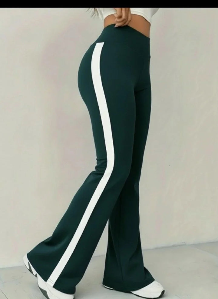 Kadın Yüksek Bel İspanyol Paçalı Yanlardan şerit Detaylı Dalgıç Tayt Pantolon