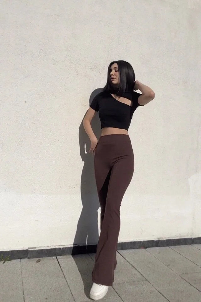 Kadın Yüksek Bel Krep Kumaş Bol Paça Pantolon