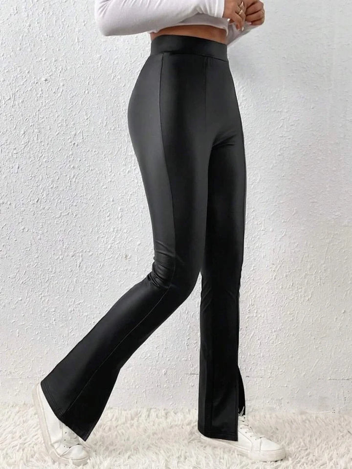 Kadın Yüksek Bel önden Yırtmaçlı Deri Tayt