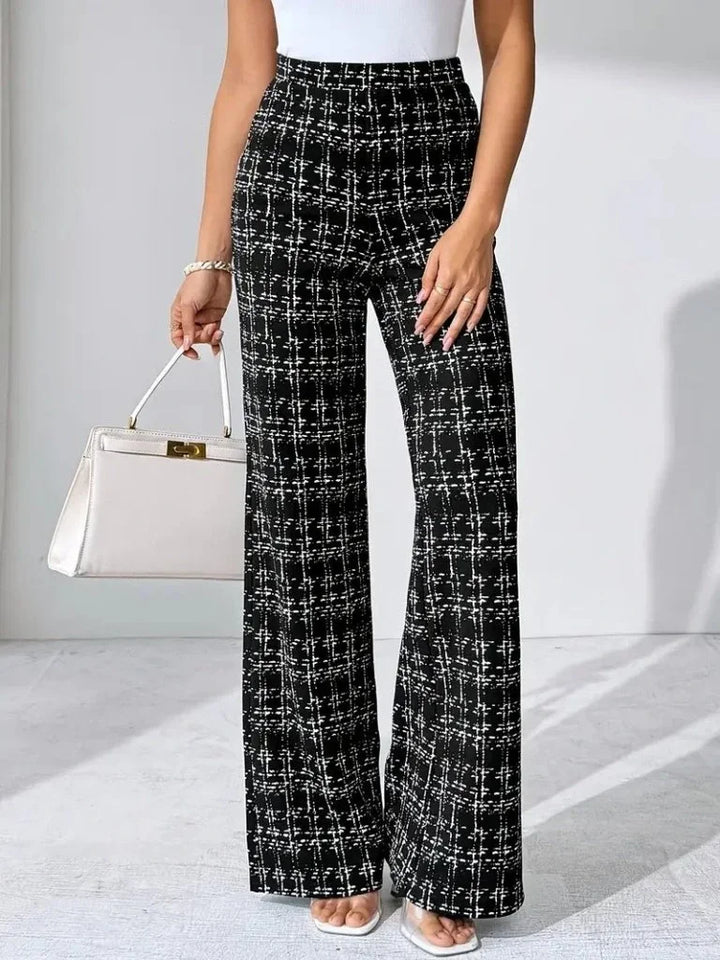 Kadın Yüksek Bel Paçaya Doğru Geniş Dokuma Pantolon