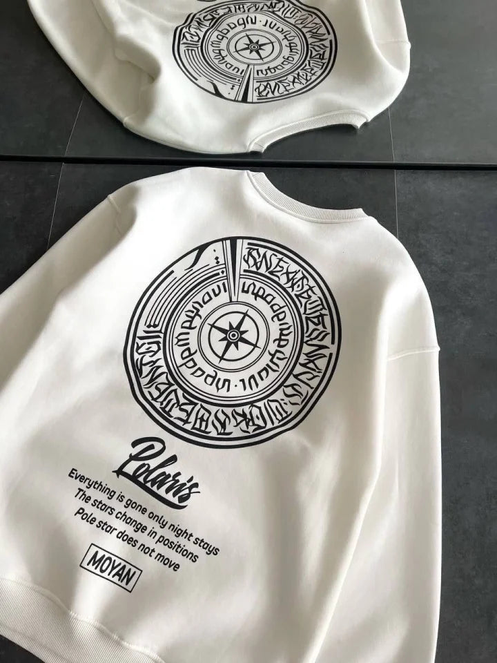 Kışlık Bisiklet Yaka Ön Ve Arka Baskılı SweatShirt - Beyaz
