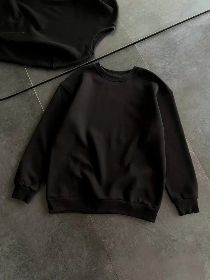 Kışlık Bisiklet Yaka Üç İplik Basic SweatShirt - Siyah