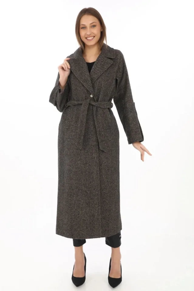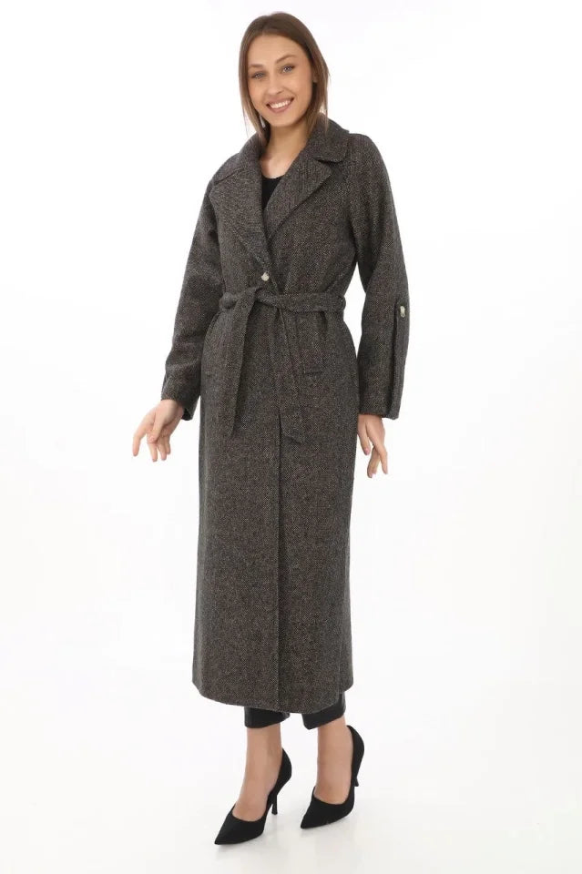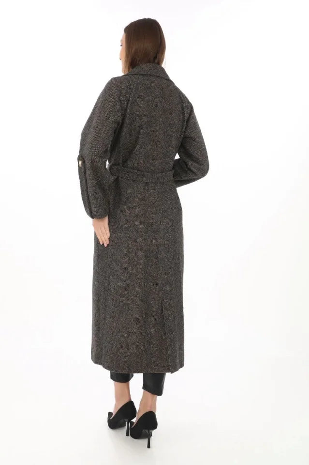 Kolu Apoletli Astarlı Kaşmir Kaşe Kaban - Füme