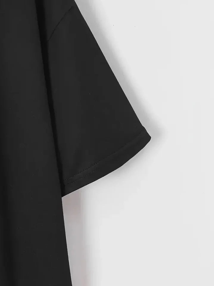 New York Baskılı Oversize Bisiklet Yaka T-shirt - Siyah