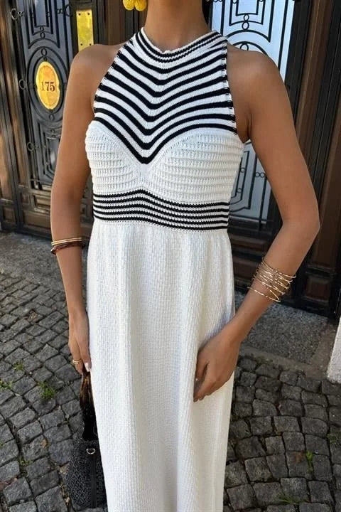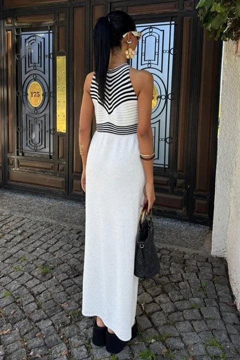 Roba Çizgili Uzun Triko Elbise 2858