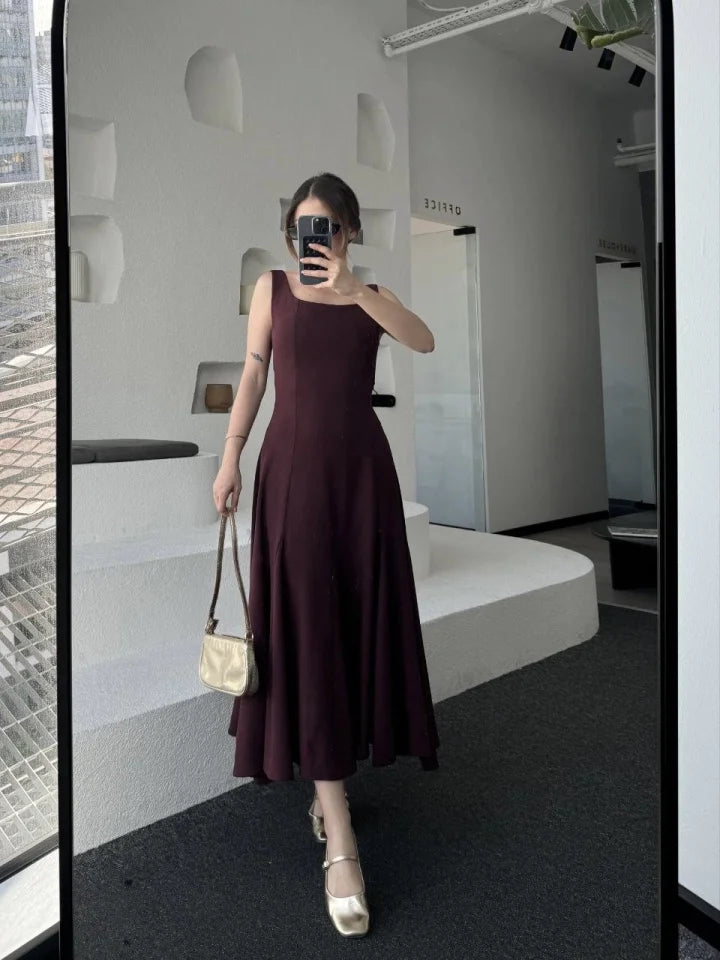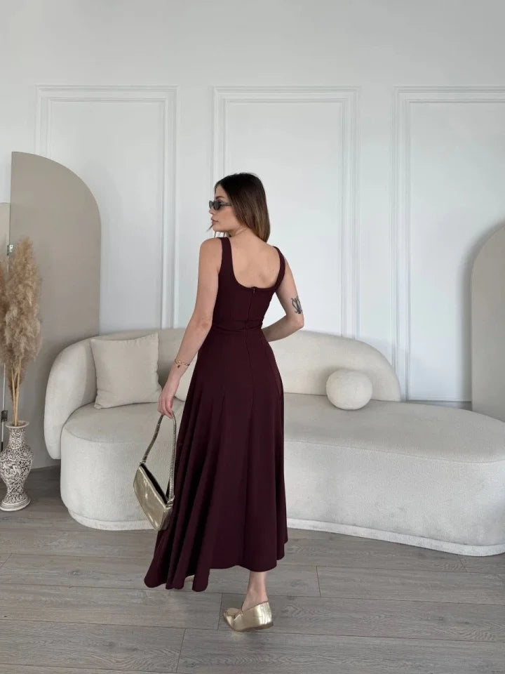 Sırt Dekolteli Kolsuz Uzun Elbise - Mürdüm