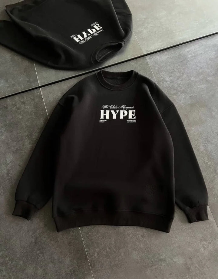 Üç İplik Bisiklet Yaka Baskılı SweatShirt - Siyah