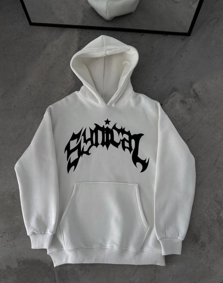 Üç İplik Kapşonlu Baskılı Oversize SweatShirt- Beyaz