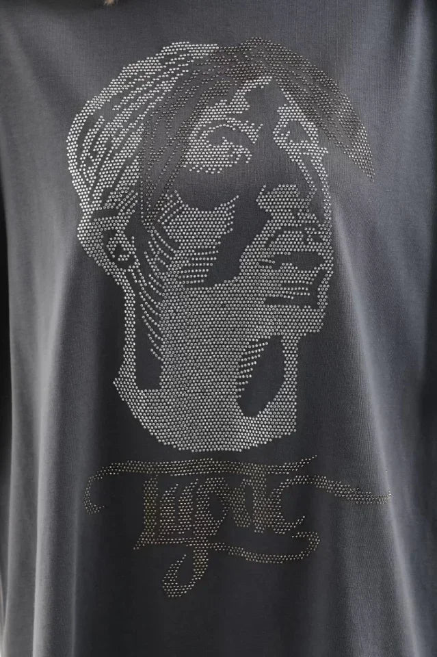 Unisex Taş Desenli Oversize T-Shirt - Füme